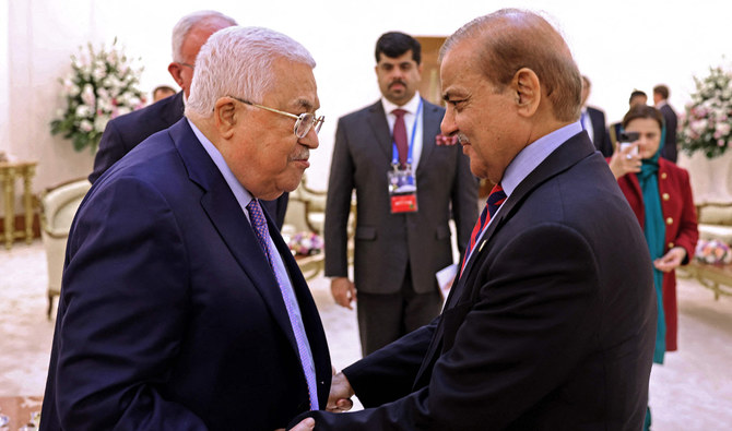 Palestinian President Mahmoud Abbas met with Prime Minister Shehbaz Sharif in Sharm El-Sheikh and expressed heartfelt gratitude for Pakistan’s consistent political and diplomatic support for the people of Palestine. The meeting took place on the sidelines of the Peace Summit, where Bahrain’s King Hamad bin Isa Al Khalifa was also present.