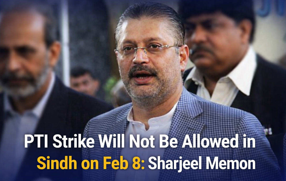 KARACHI: Sindh Senior Minister Sharjeel Inam Memon on Monday said that the Pakistan Tehreek-e-Insaf (PTI) will not be allowed to stage a strike in Sindh on February 8, accusing the party of attempting to recreate a May 9–like situation in Karachi.